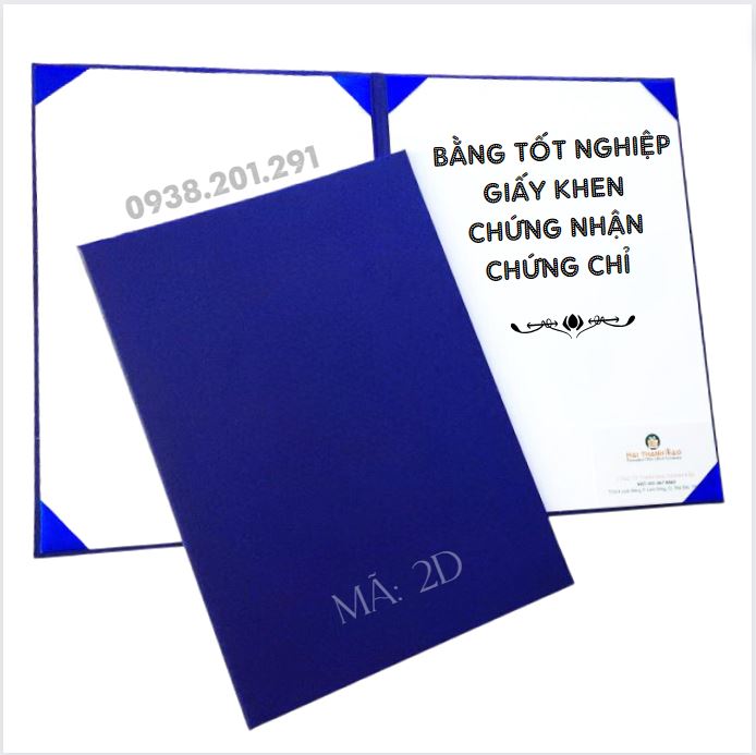 Bìa bằng si decal màu xanh dương mã số 2D, kích thước A4, có 8 góc ruy băng xanh dương, có thể dùng kẹp bằng tốt nghiệp, kẹp bằng chứng nhận, chứng chỉ tốt nghiệp, giấy khen thưởng, giấy tờ, hợp đồng ký kết...