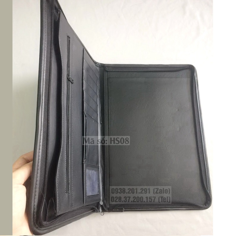 Bìa dây kéo đựng hồ sơ đẹp giả da màu đen HS08 đẹp tiện dụng cho người làm văn phòng, lãnh đạo công ty
