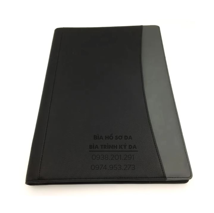 Bìa đựng hồ sơ A4 màu đen, đựng được giấy tờ tài liệu hội nghị, hội thảo, đựng được máy tính bảng, điện thoại di động rất tiện lợi và đẹp mắt.