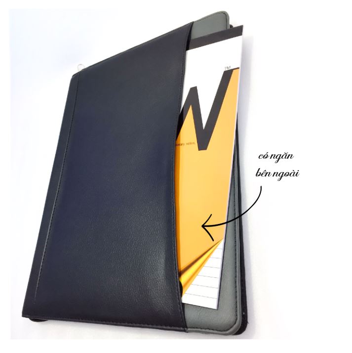 Bên phải có ngăn để gài bìa cứng của cuốn sổ ghi chép kích thước A4.