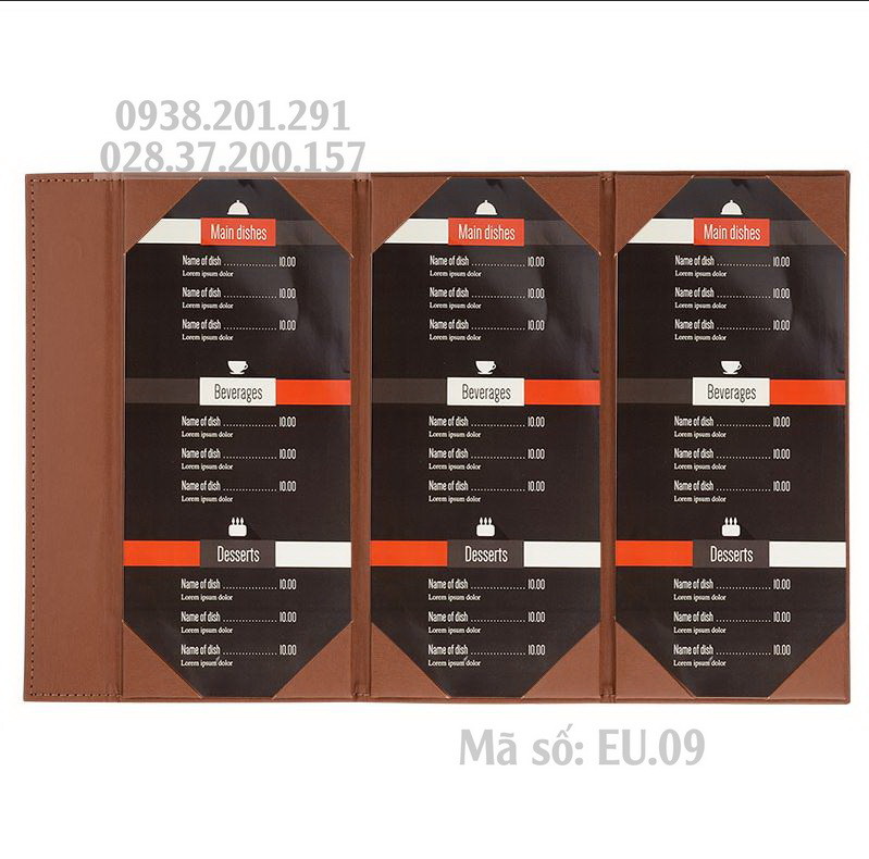 Khi có nhu cầu in bìa menu, bìa kẹp bill tính tiền in logo công ty, nhà hàng, khách sạn, quán ăn, vui lòng liên hệ: