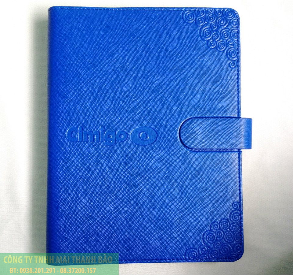 Cuốn sổ tay bìa da cao cấp Cimigo được thiết kế với 2 màu nổi bật là xanh dương và xanh lá cây - là 2 màu logo của khách hàng.