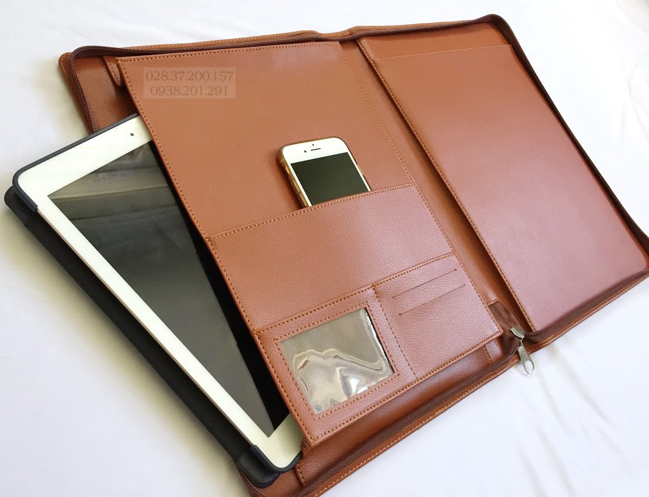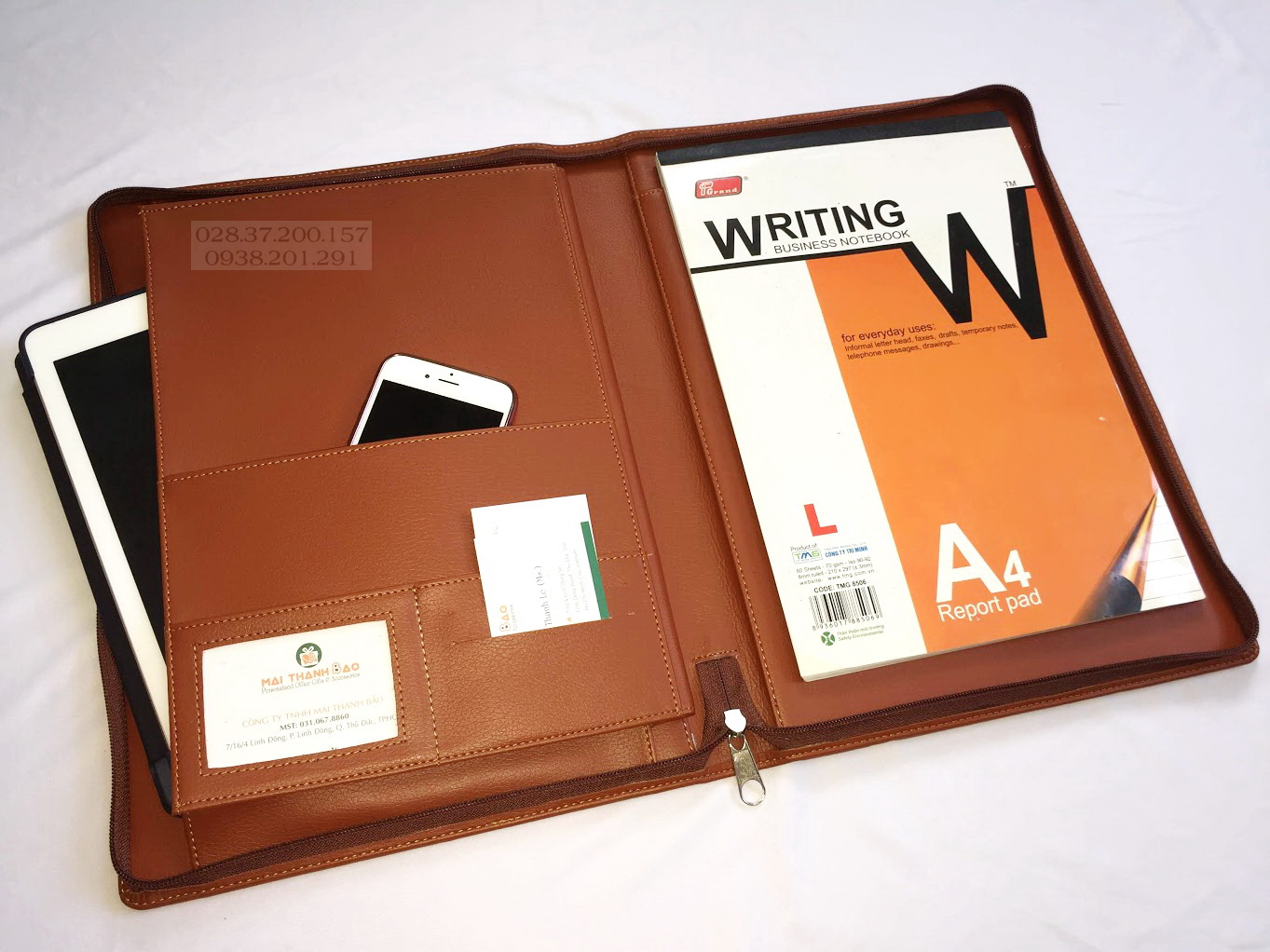 Bìa folder da có các ngăn đựng bút viết, thẻ rất tiện dụng